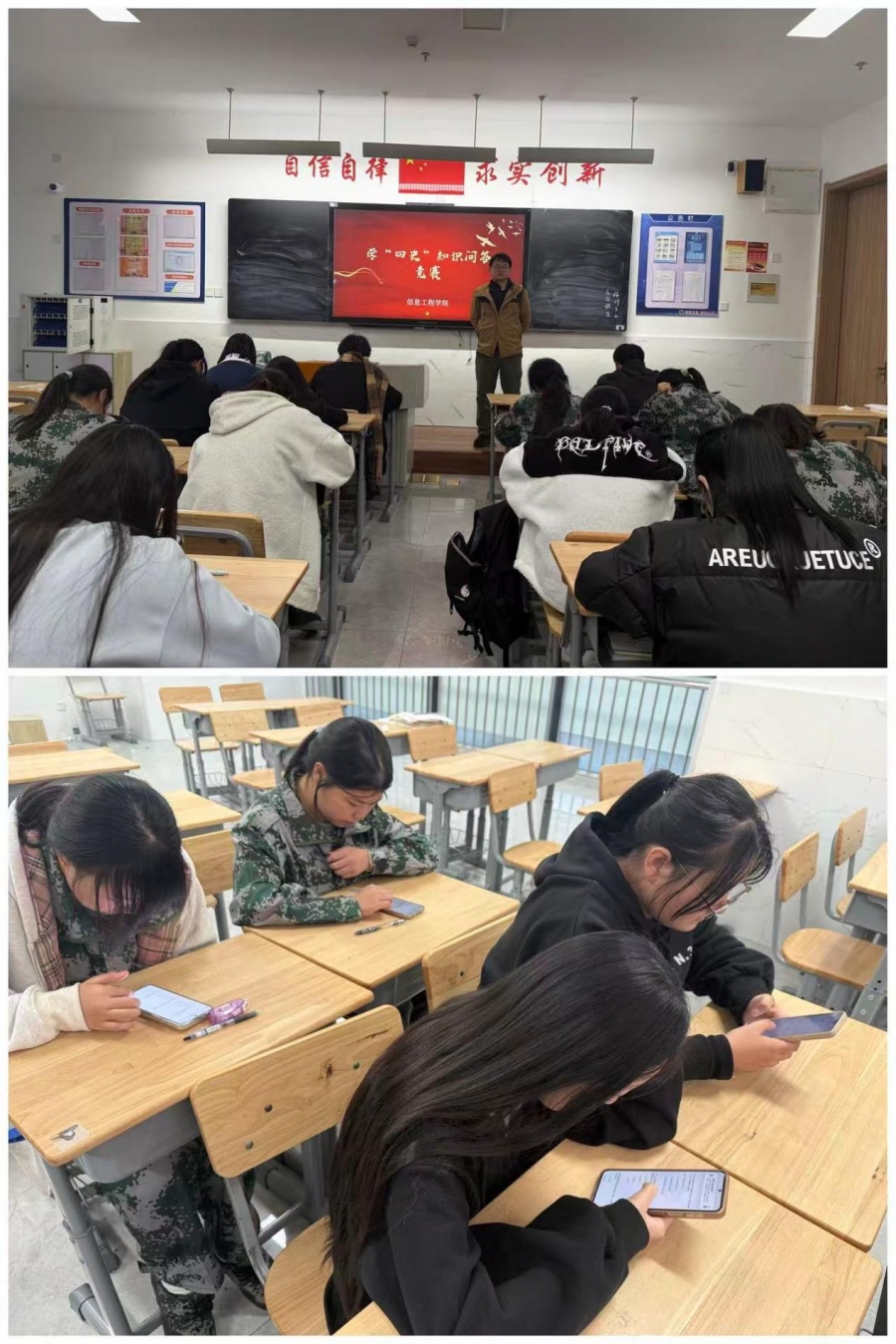 为了深化青年学子对 “四史” 知识的理解与掌握,进一步筑牢理想信念根基,10月30日下午,信息工程学院在匠心楼303教室开展“四史” 知识竞赛答题选拔活动。本次活动由学院团总书记张光源统筹组织,全院各年级学生积极参与。